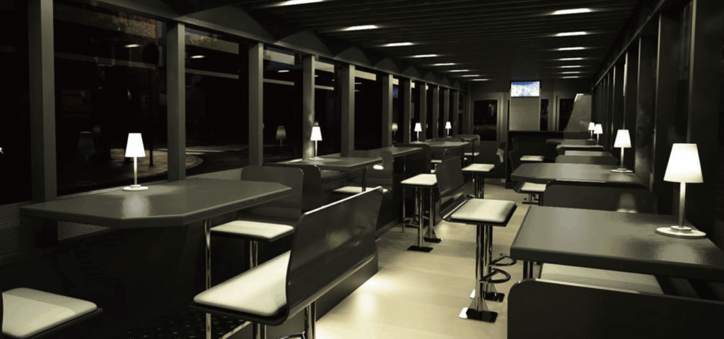 全国でも稀に見るスタイリッシュな外観と内装は、まるで動くパーティルーム。